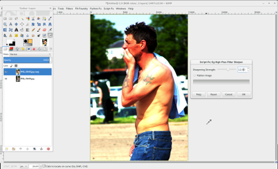 Next I apply a High-Pass sharpening filter to sharpen the upper layer.