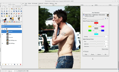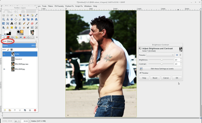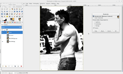 Next you need to apply the contrast layer we have just created to the original image. First, desaturate the layer - right click, Colours->Desaturate, choose Luminosity as your base.