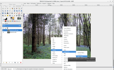Convert the image to LAB by right clicking on the image and selecting Colors->Components->Decompose.