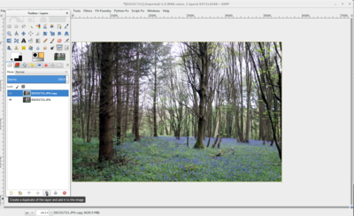 First create a copy of the original image by clicking the "Duplicate" button at the bottom of the Layers dialogue.