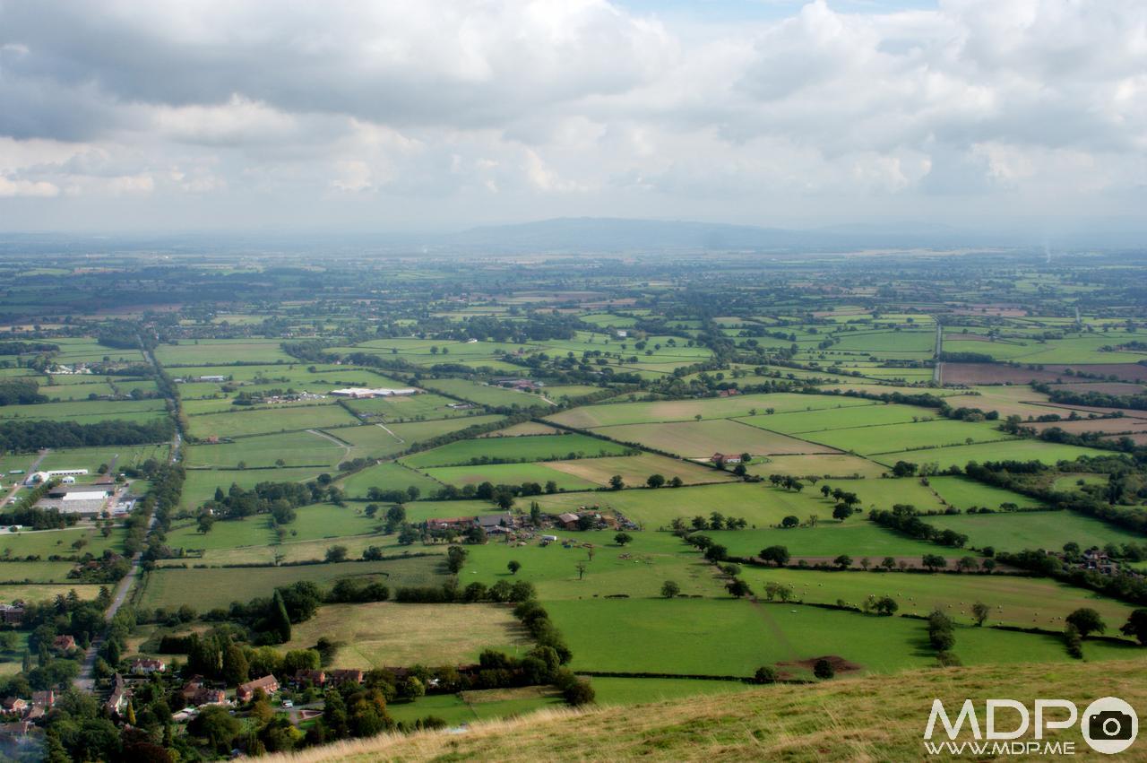 A patchwork of fields in Worcestershire. Taken from near the top of the Worcester Beacon in the Malvern Hills.