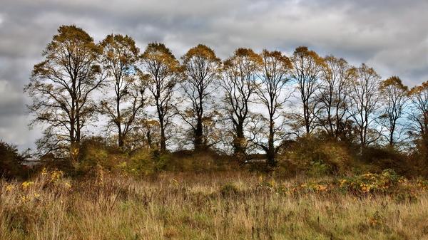 Line of autumn trees by the River Severn