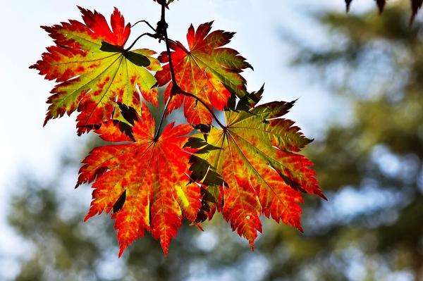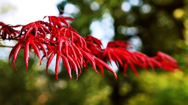 Maple leaves in the autumn sunlight at Westonbirt Arboretum