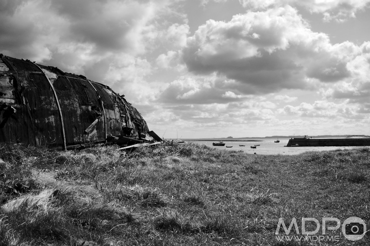 Fisherman's hut on Holy Island. The huts are made from upturned old disused fishing boats. The local fishermen believed it to be a sin to scrap old boats so, when the old wooden boats became unnecessary at the end of the 20th century, they were put to good use as storage sheds.