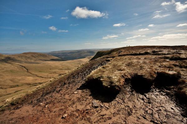 Taken on the way up the miner's track leading up to Force Crag. The black vertical rocks are Force Crag. Just below the crag itself you can just make out the disused mine buildings. The mine was abandoned in 1991 and was the last working mine in the Lake District.