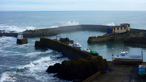Berwick town walls and harbour. To the far left is Coxon's Tower and the lighthouse can be see to the far right. The walls are amongst the best preserved town defences in Britain.