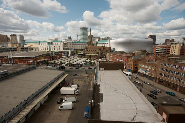 Birmingham skyline and Selfridges building taken from the roof of a multi-storey carpark.