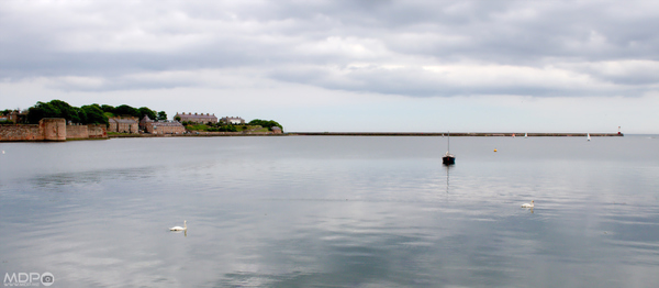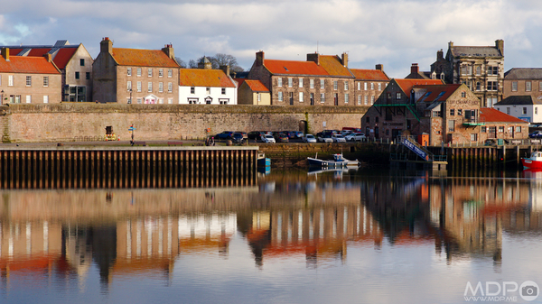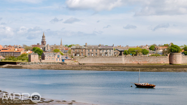 The town of Berwick viewed from across the harbour in Tweedmouth. The town walls were built in the 14th Century by Edward I to protect the town from the Scots.