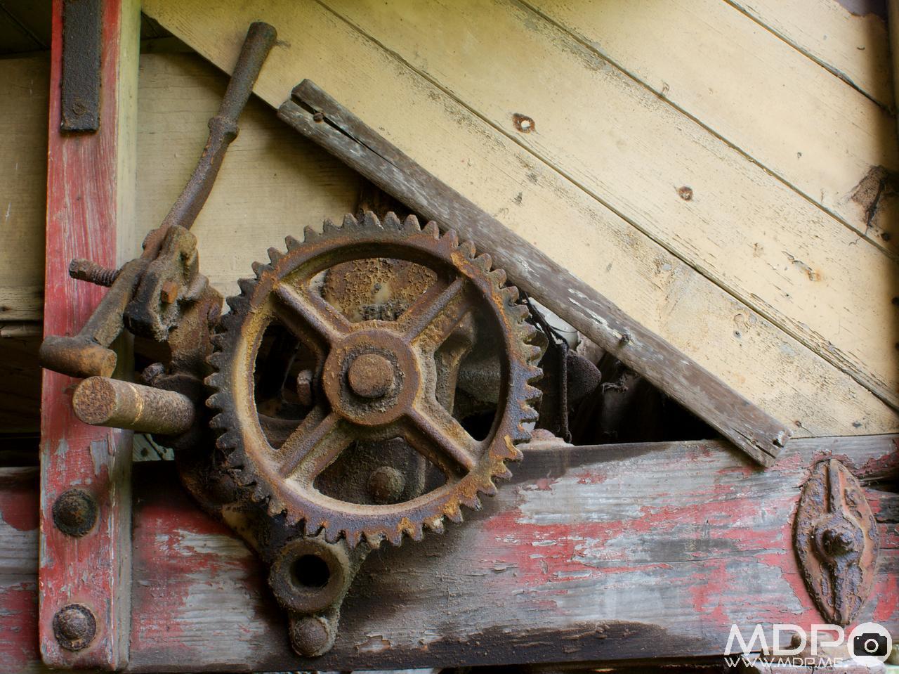 Detail from an old threshing machine in Avoncroft Museum of Historic Buildings in Bromsgrove.