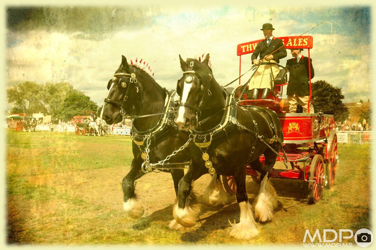 Horse and cart from Thwaites brewery on display at the Three Counties Show in Malvern