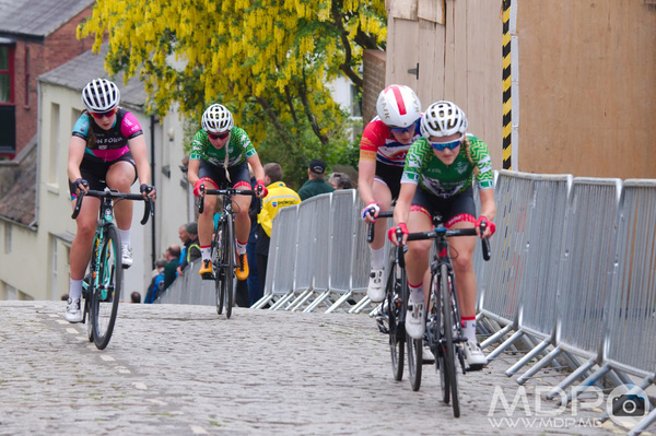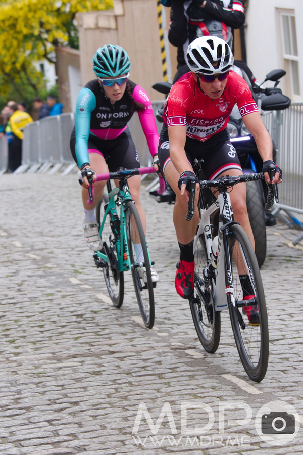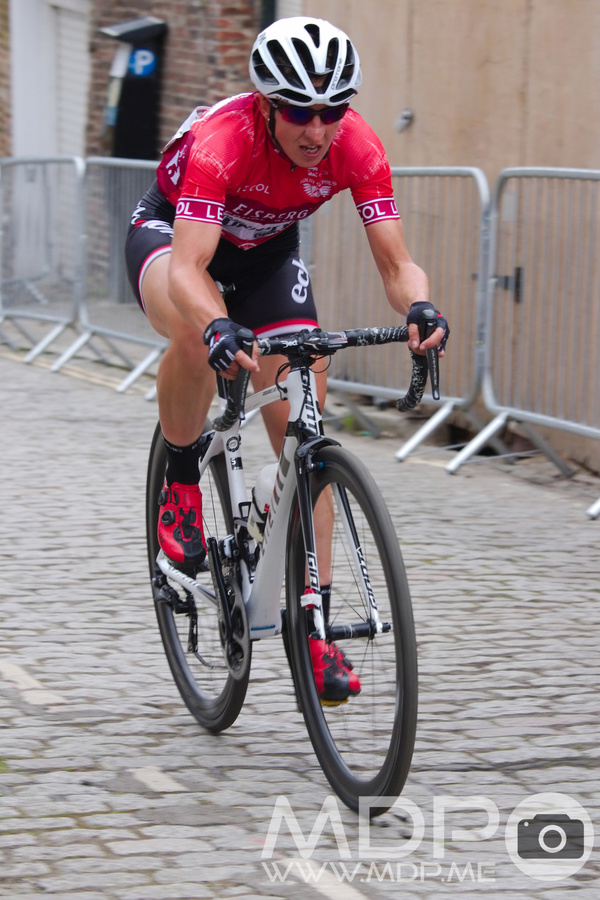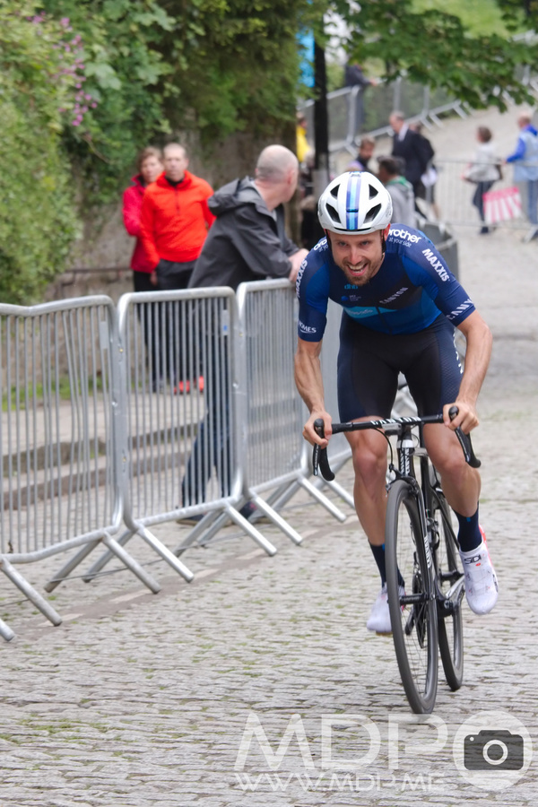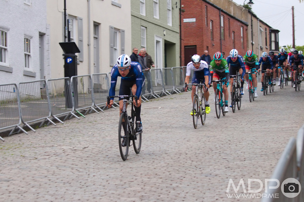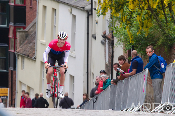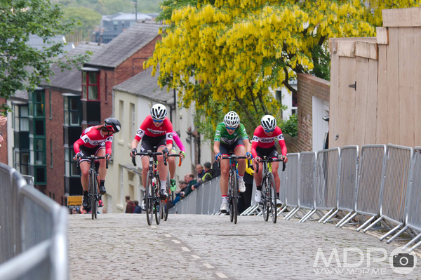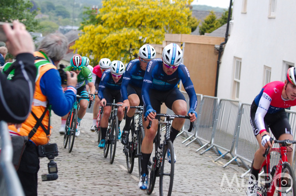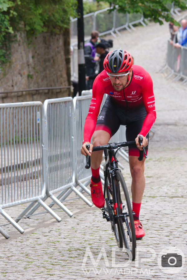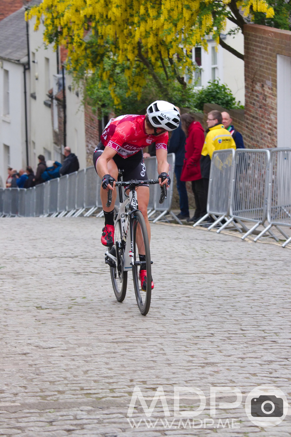 Harry Tanfield didn't look as if he enjoyed the cobbled climb too much. Nevertheless, his team, Canyon Eisberg, finished the event second overall, behind Madison Genesis.