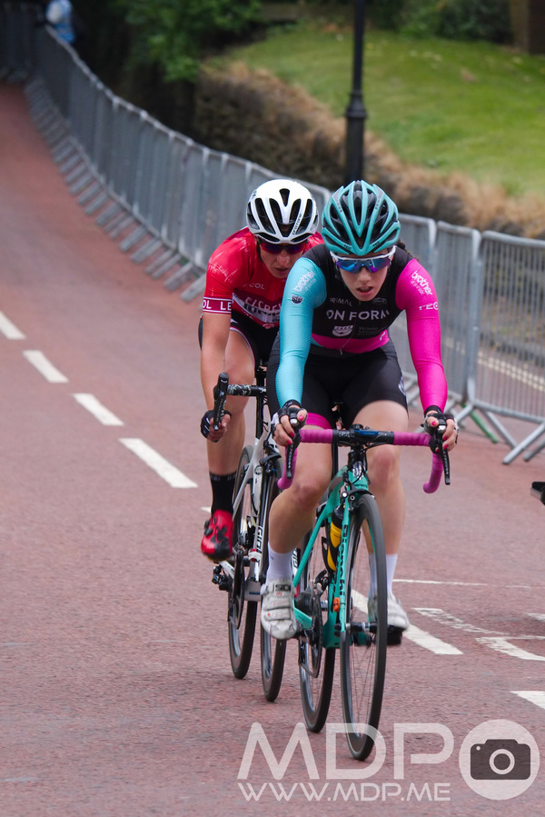 The tough course saw the peleton quickly fracture into smaller groups with the early pace being set by Rebecca Durrell (Storey Racing), Anna Henderson (Team OnForm) and Nikki Juniper (NJC-Biemme-Echelon). Rebecca Durrell soon lost contact however, due to mechanical issues, leaving Henderson and Juniper out front alone.