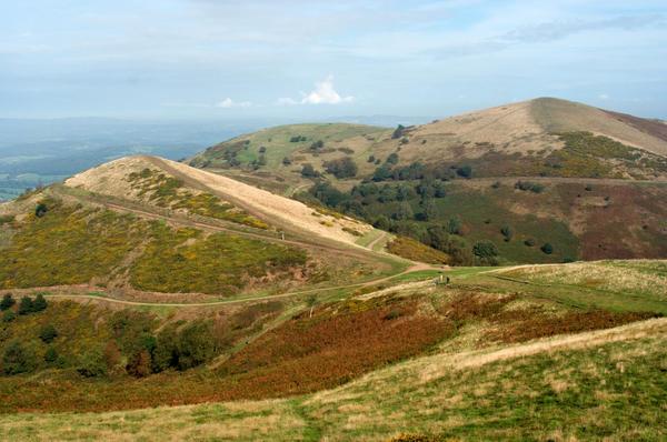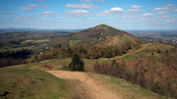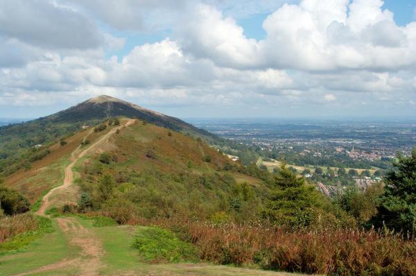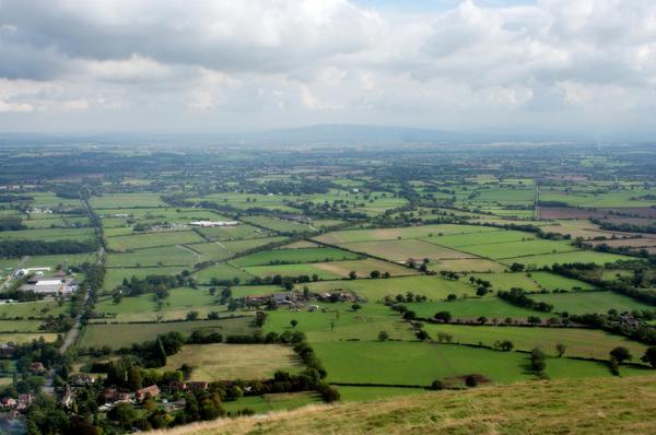 A patchwork of fields in Worcestershire. Taken from near the top of the Worcester Beacon in the Malvern Hills.
